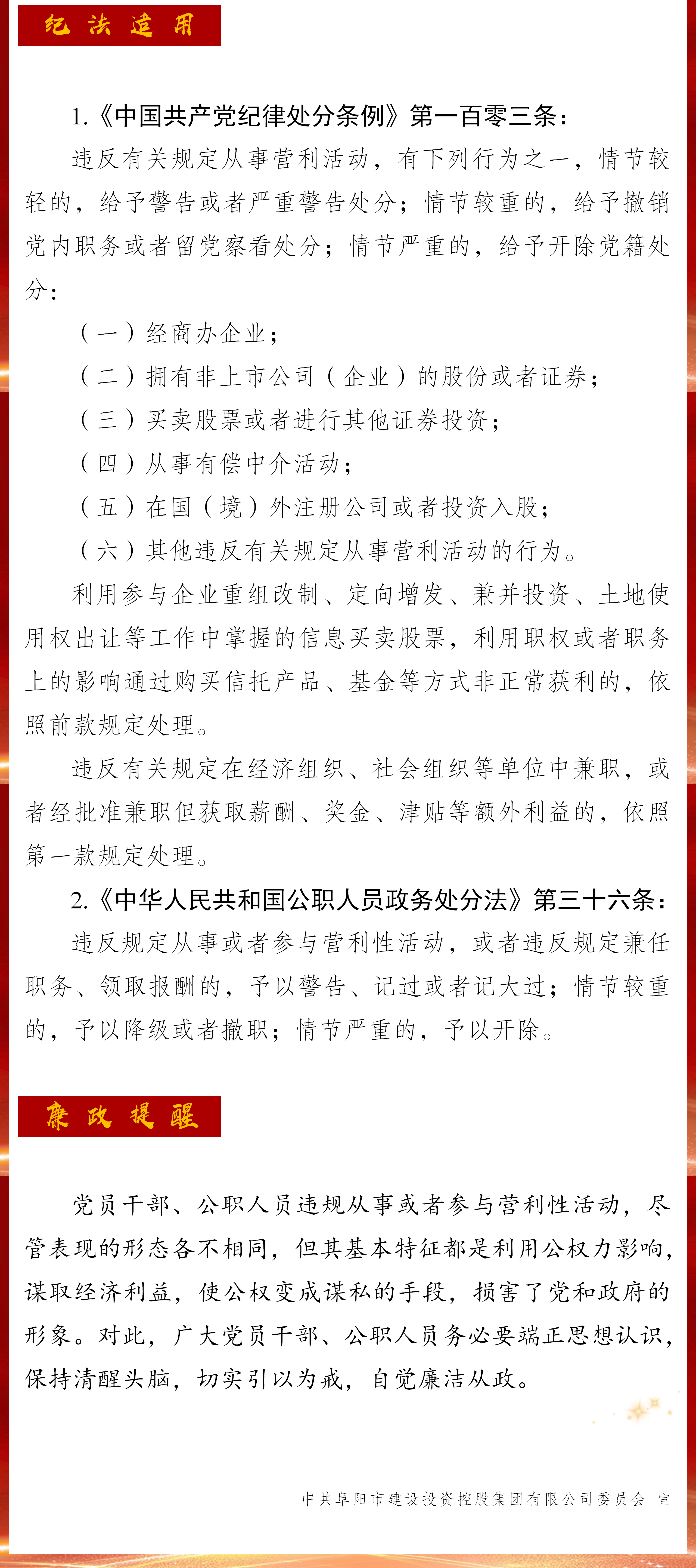 建投周“紀(jì)”丨公職人員紀(jì)法禁令200條之嚴(yán)禁違規(guī)從事或者參與營利性活動